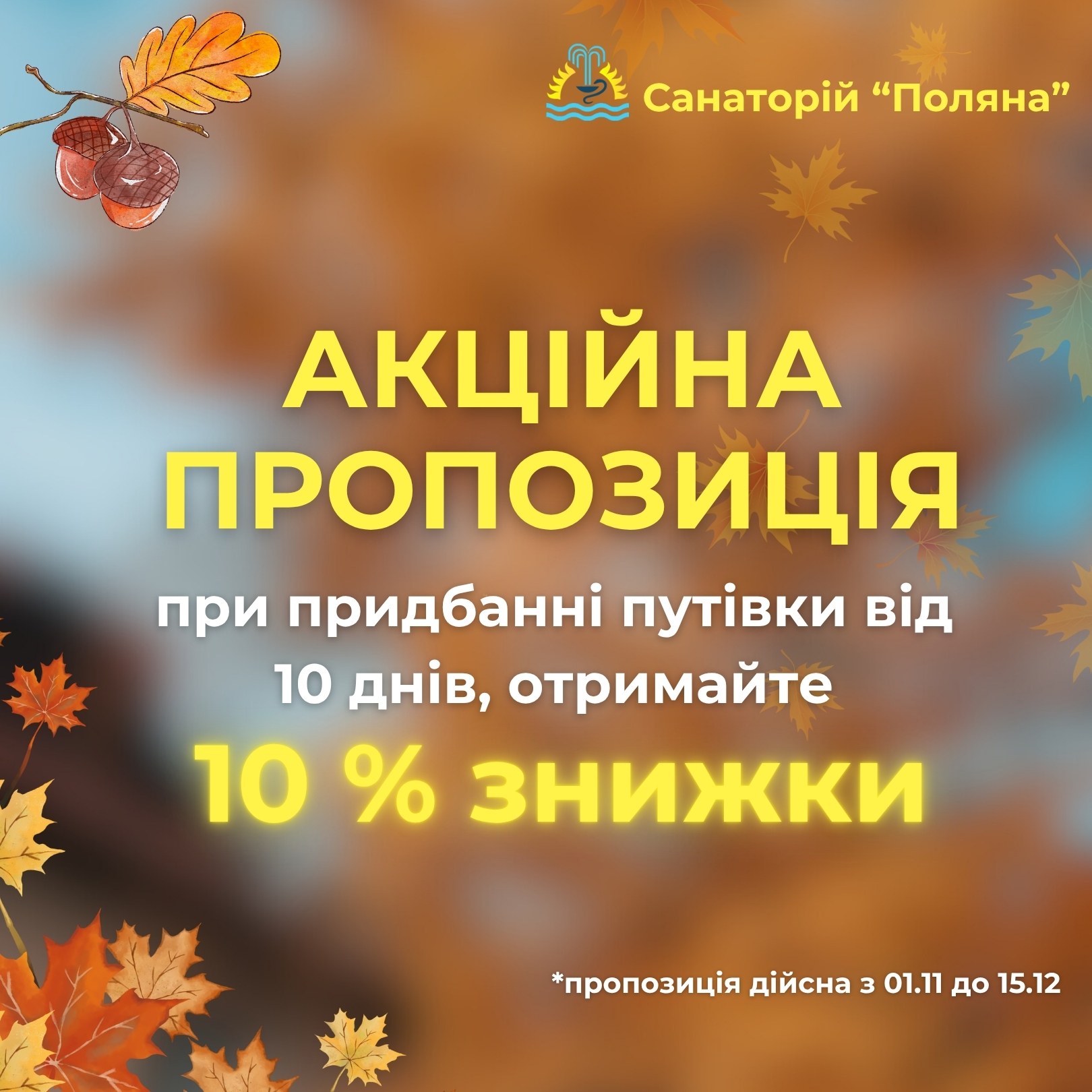 На території санаторію розміщений власний бювет з природною водою, про властивості якої знали ще у минулому столітті. Обравши санаторій «Поляна», Ви матимете унікальну можливість спробувати на смак цю життєдайну мінеральну воду та пройти курс лікування на основі її щоденного прийому.