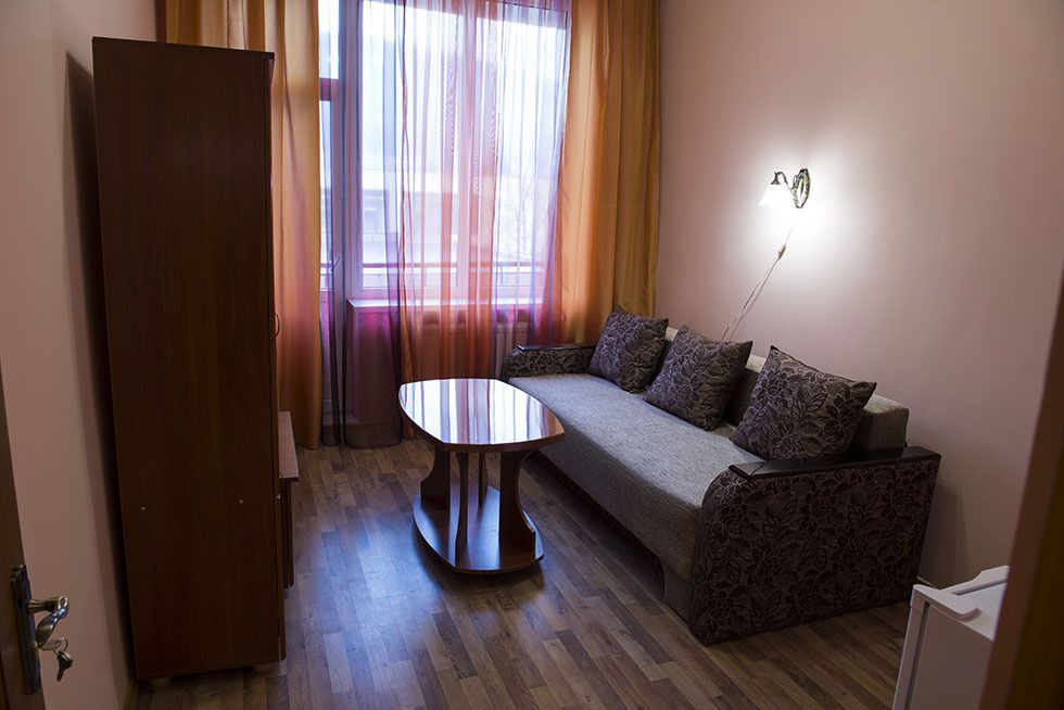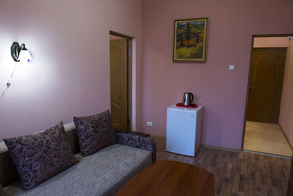 Комфортний номер із сучасним інтер’єром з усіма зручностями та балконом. У номері холодильник, телевізор, санвузл, душ.Водопостачання холодної та гарячої води цілодобове.
